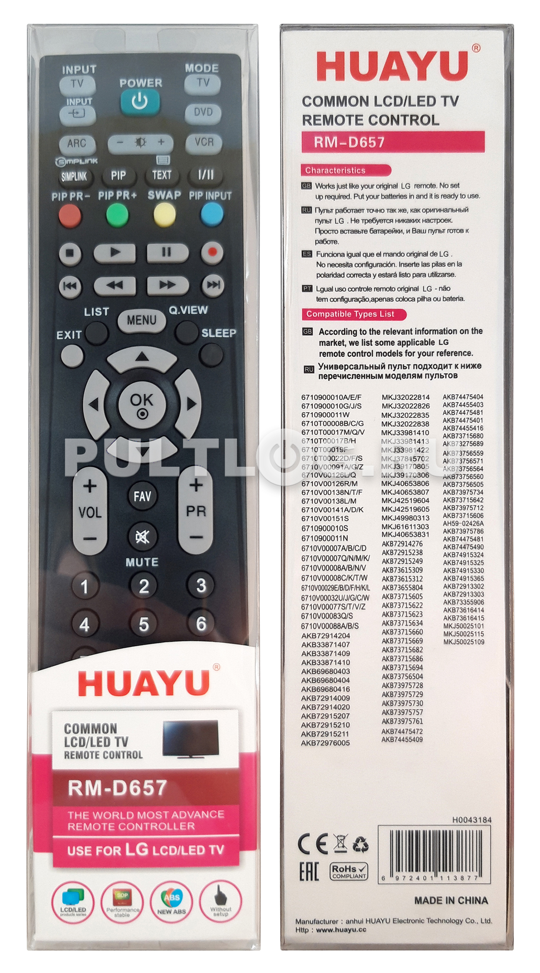 HUAYU RM-D657 универсальный пульт для телевизоров LG.