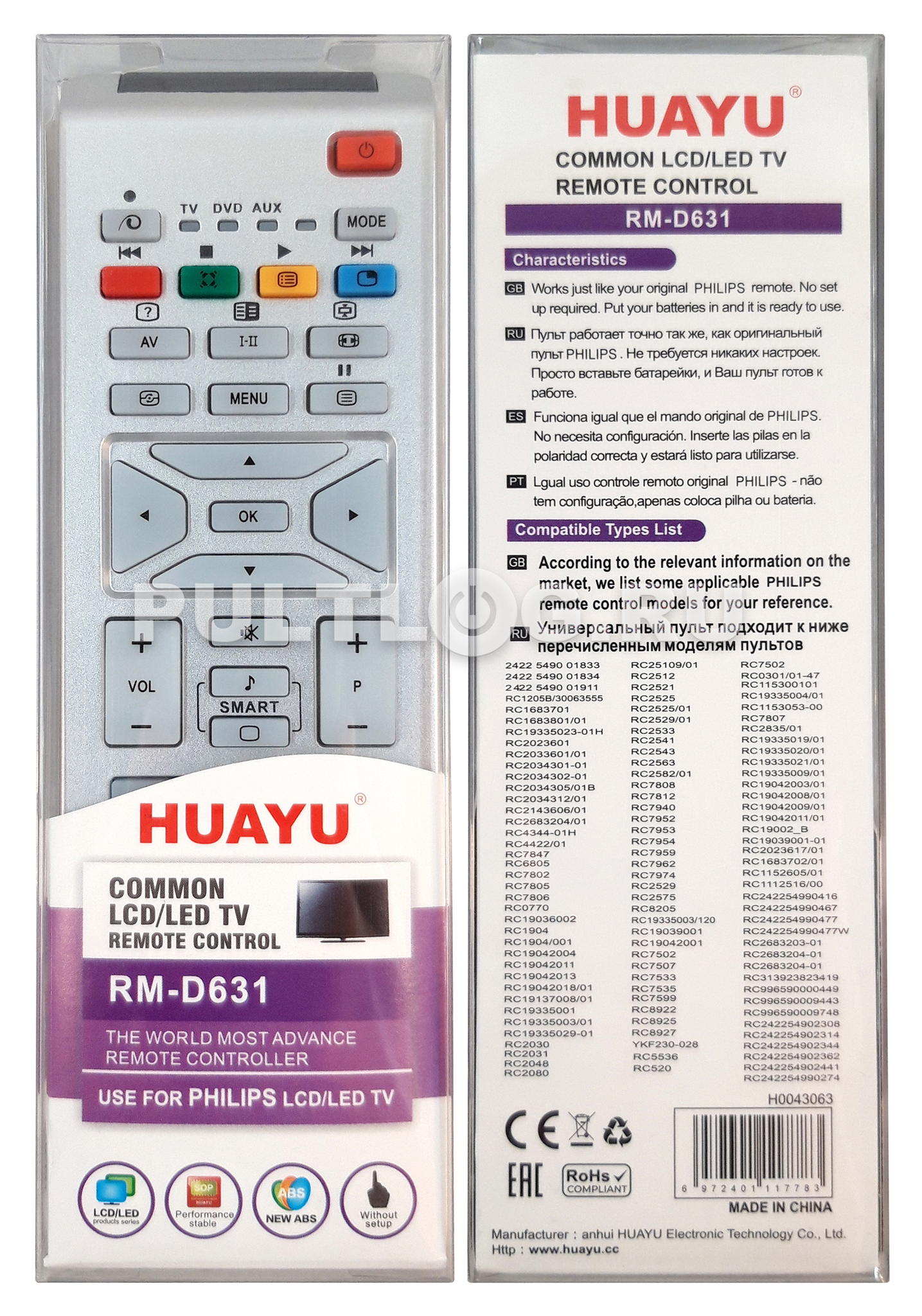 HUAYU RM-D631 универсальный пульт для телевизоров марки PHILIPS!